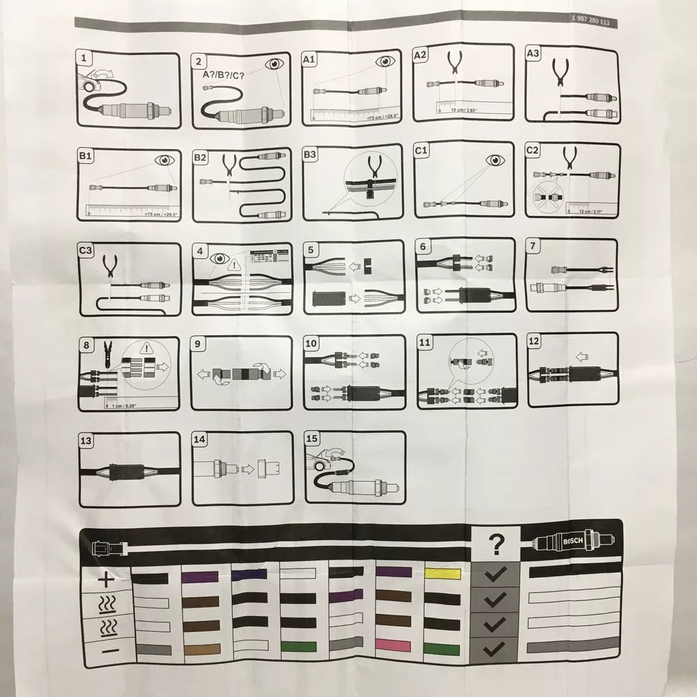 Segue a tabela de cores para instalação da sonda lambda universal Bosch